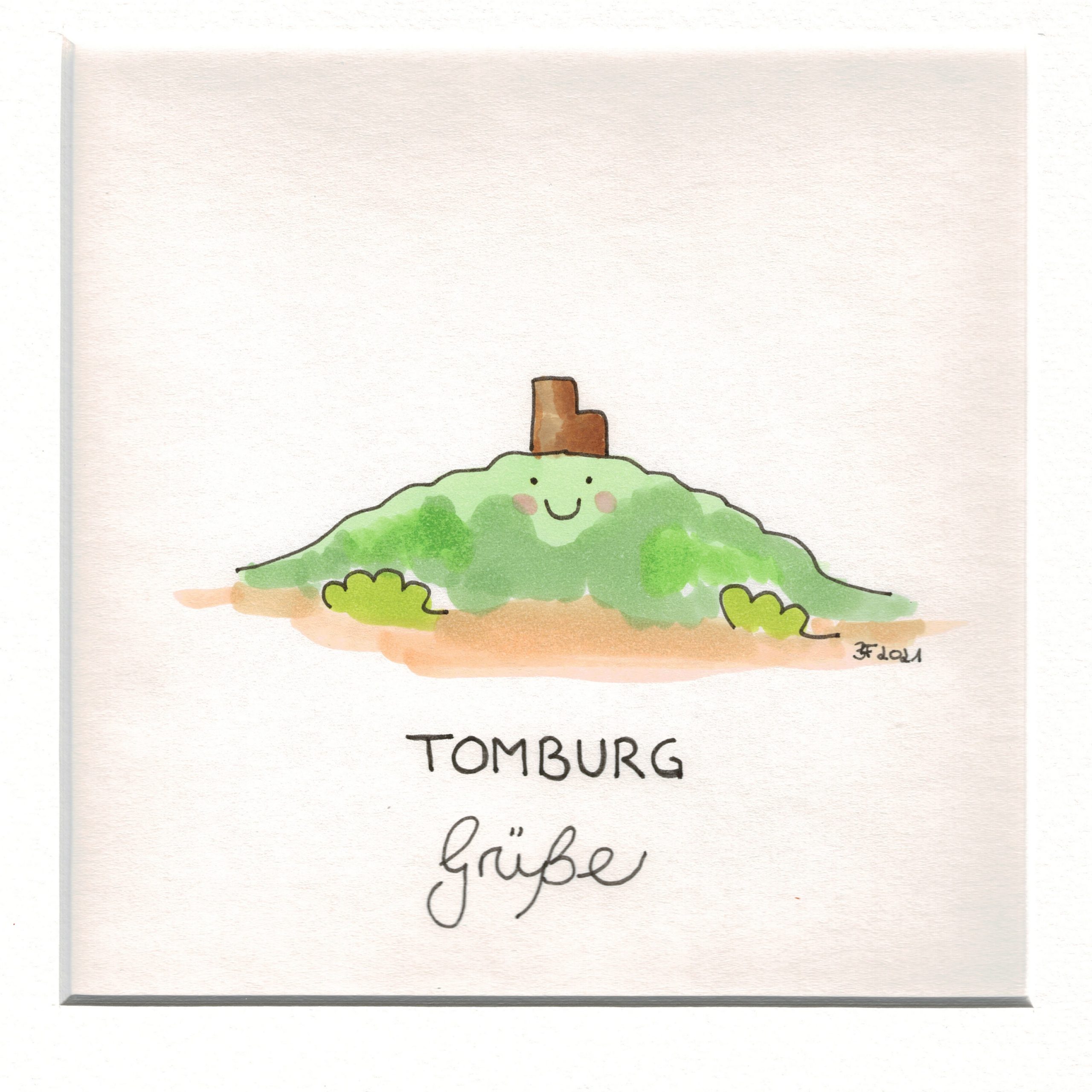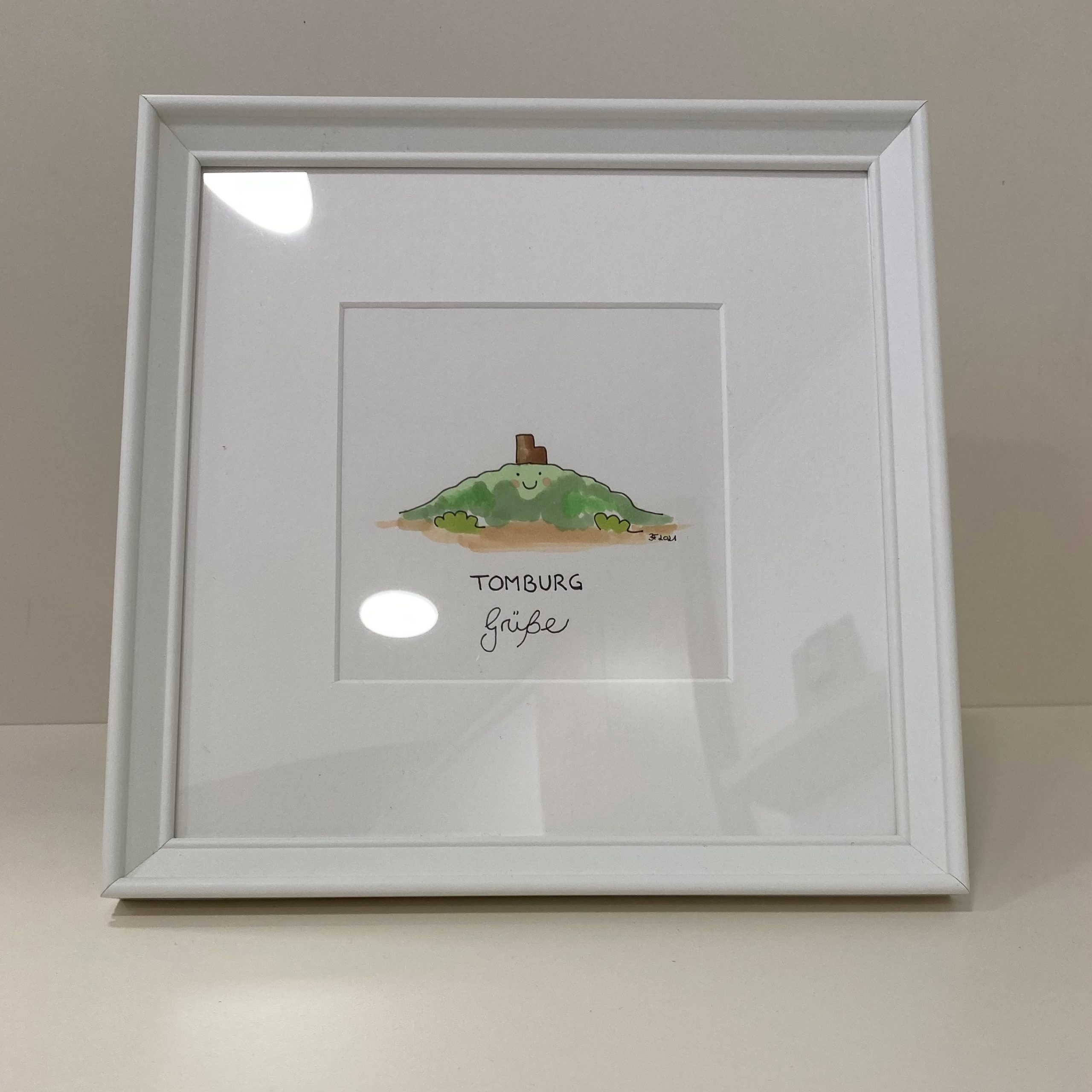 Bild (Original) inkl. Rahmen: Die glückliche TOMBURG „Grüße“