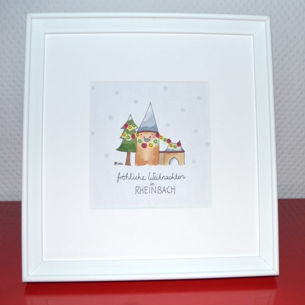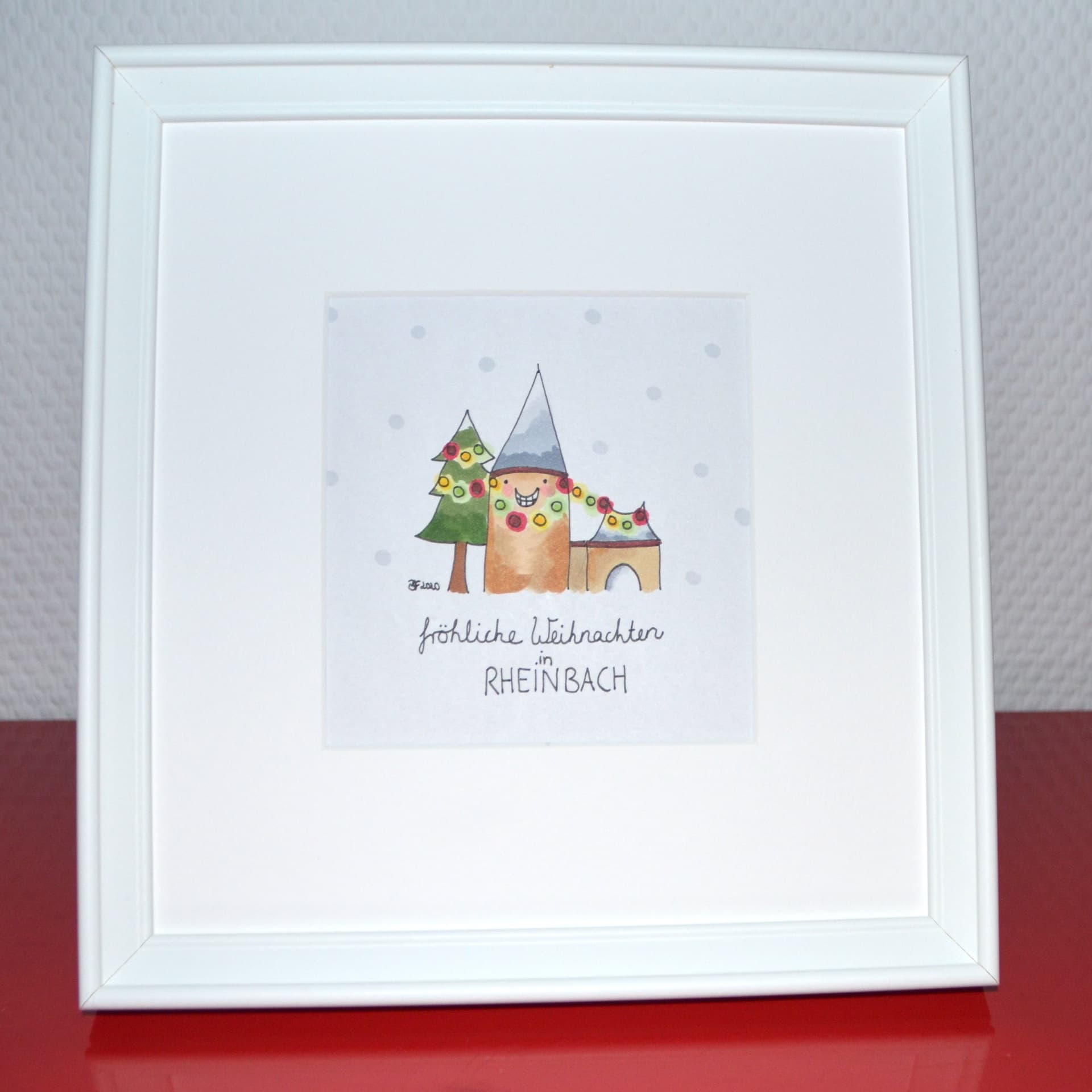 Bild (Original) inkl. Rahmen: Die glückliche Burg „Fröhliche Weihnachten in Rheinbach“