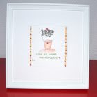 Der Rahmen ist jeweils 23 x 23 cm (außen) und 13 x 13 (innen). Er kann aufgestellt oder aufgehangen werden. Aktuell gibt es sie in schwarz und weiß.