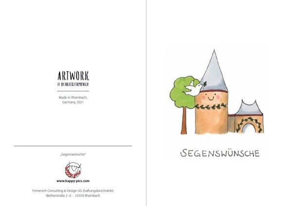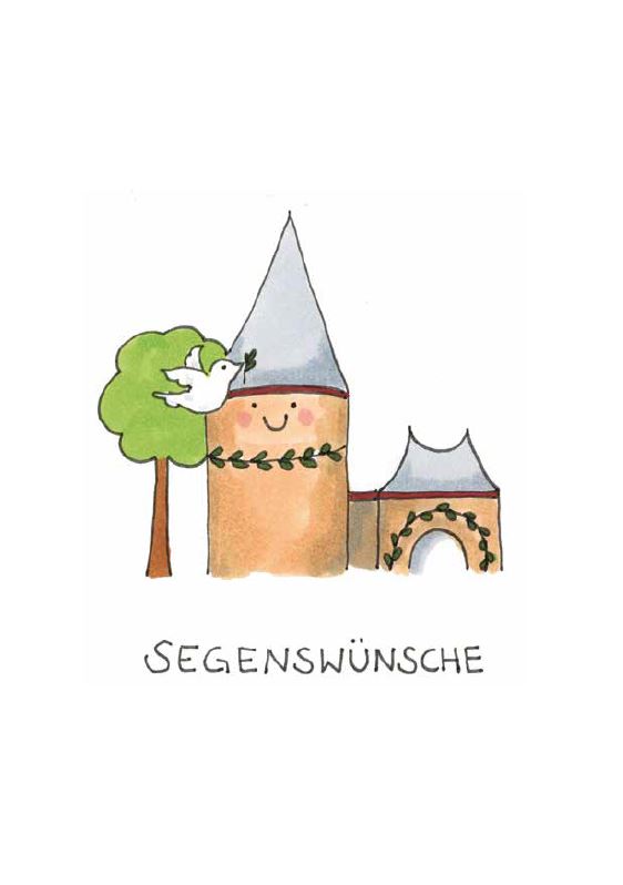 Grußkarte (Druck): glückliche Burg „Segenswünsche“