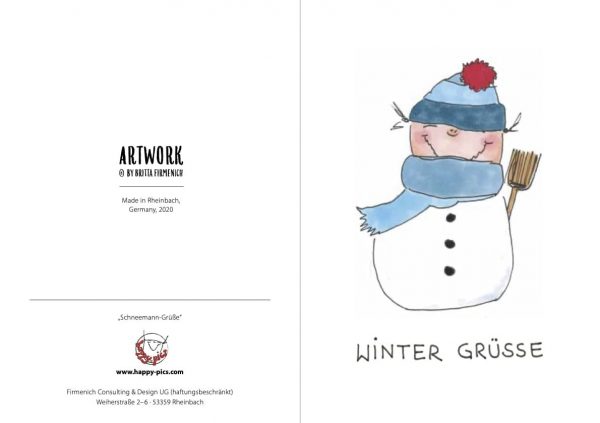 7 Winter-Grußkarte (Druck): Hamikaze „Schneemann-Grüße“